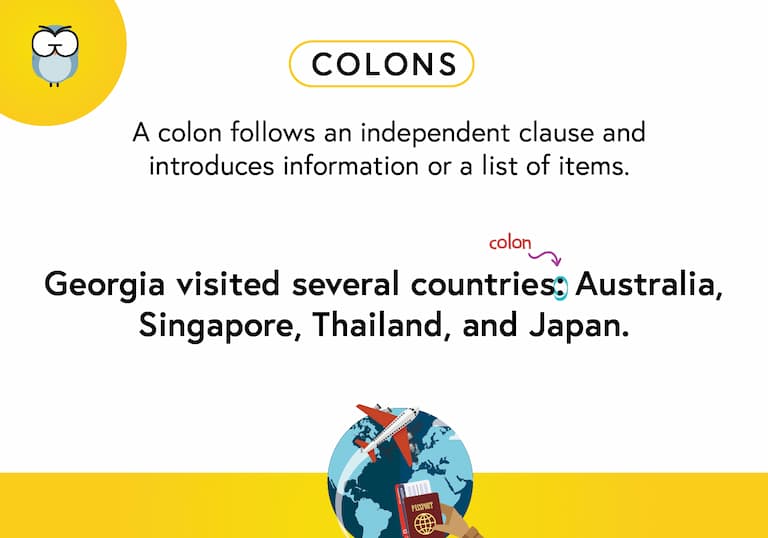 Colons are great pieces of punctuation to use when you’re introducing a list of items or emphasizing information. They help direct the reader’s attention to what you are deeming to be important. Take the following examples (and, coincidentally, this use of a colon!):